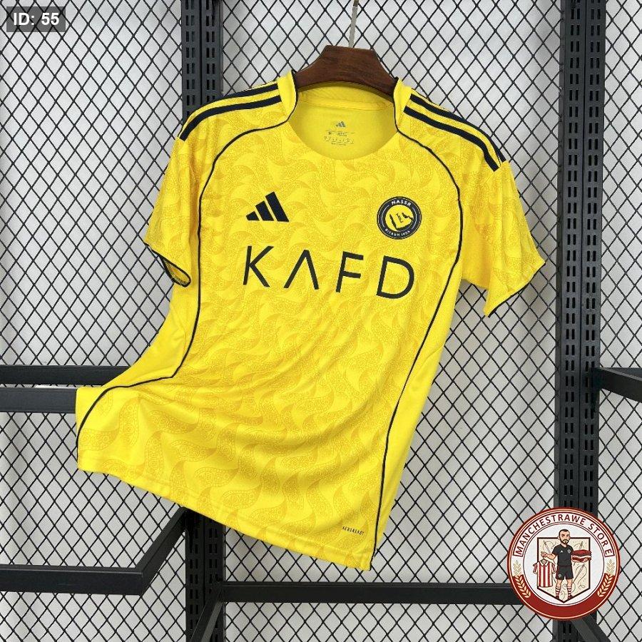 تيشيرت النصر السعودي موسم 2025/2026 مع اسم كريستيانو رونالدو يمثل دمجًا مثاليًا بين هوية النادي العريقة وروح النجم البرتغالي الأسطوري. القميص يأتي باللون الأصفر الكلاسيكي للنصر، مع لمسات زرقاء أنيقة على الأكمام والخطوط الجانبية، ليعكس الفخامة والانتماء للنادي. اسم كريستيانو رونالدو ورقمه يظهران بشكل واضح على الظهر، مما يمنح التيشيرت طابعًا شخصيًا ومميزًا لعشاق اللاعب والنادي على حد سواء. التيشيرت مناسب للمباريات، للاستخدام اليومي، ولجماهير النصر الذين يريدون التعبير عن حبهم للنادي ودعمهم لنجم عالمي مثل كريستيانو رونالدو بطريقة أنيقة وعصرية تعكس القوة والطموح داخل الملعب وخارجه